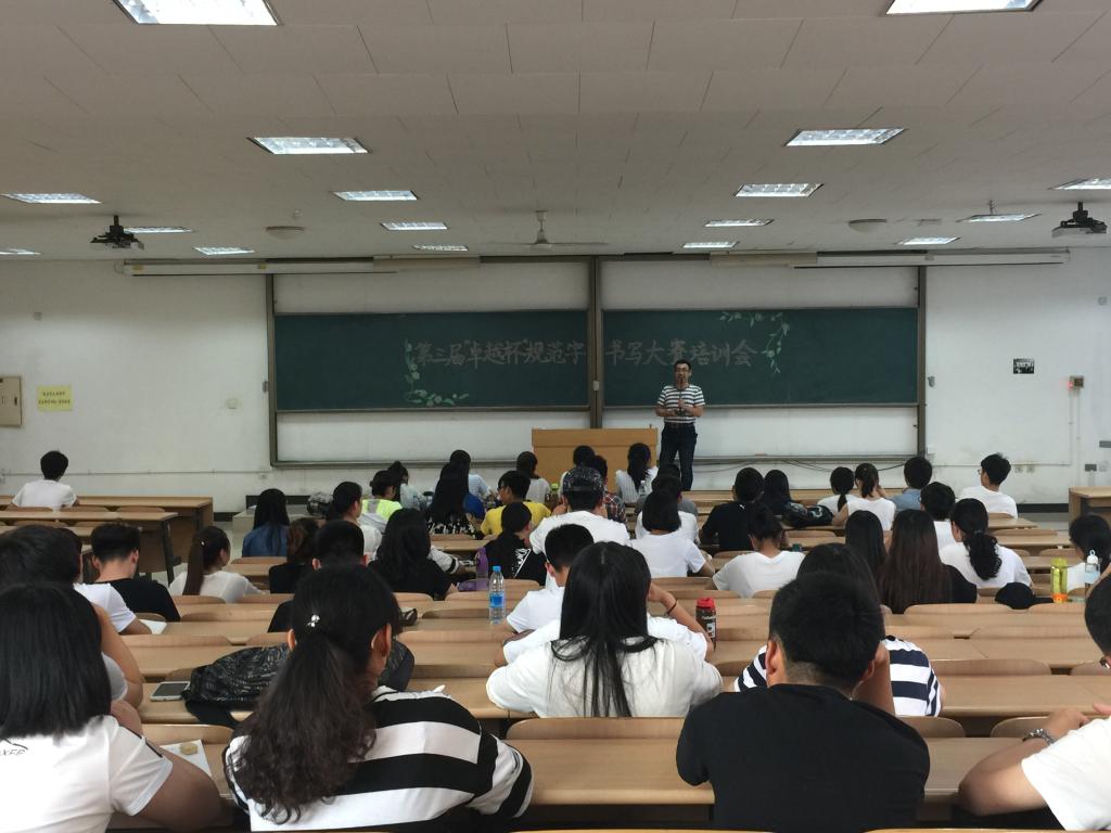 赛事承办方精心组织,邀请书法家为全体参赛同学赛前培训。校书法协会会员王振刚老师从学习方法、基本技法、结构布局等方面进行详细讲解,亲身示范运笔的步骤和要领。指导同学们选帖、习字过程中如何做到从“形似”到“神似”,深刻体会“平正”、“匀称”、“紧凑”和“变化”等章法知识。书法指导过程中,王振刚老师强调写好规范字对于师范生的重要意义,希望同学们重视规范字的书写,将中华民族的传统文化发扬光大。