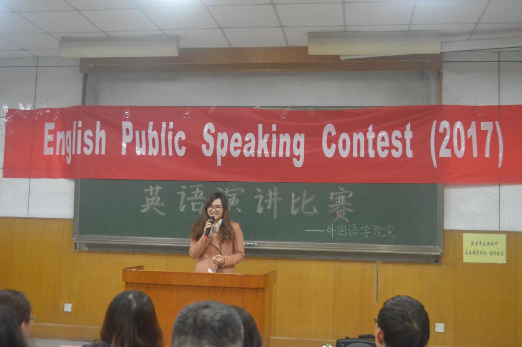 10月10日晚,由日博365网址主办、外国语学院承办的天津职业技术师范大学2017年大学生英语演讲竞赛决赛在阶梯教室104隆重举行。外国语学院党委副书记王爱敏、教授杨颖作为嘉宾出席本次大赛,我校外聘教师Arman、外国语学院副院长申丽、教师安红、高莉莉老师等9位副教授担任评委。